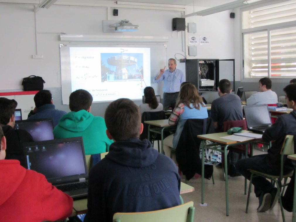 Aquest dimarts 25 de març, alumnes de 1r de Batxillerat de Ciències de l’Eugeni han pogut participar en el centre en el Taller sobre Càlcul Numèric que ha dut a terme el Jaume Soler, Vicedegà de promoció i professor de la FME (Facultat de Matemàtiques i Estadística de la UPC). El taller volia acostar els alumnes al Càlcul Numèric, una part de les matemàtiques molt utilitzada per a resoldre problemes en Enginyeria i Astronomia, per exemple, però que no sol ser en els temaris de Matemàtiques del Batxillerat. A través d’un problema físic i amb l’ús d’un full de càlcul excel programat pel propi Jaume Soler, els alumnes han conegut el perquè de la resolució numèrica d’un problema i han treballat en aquesta resolució